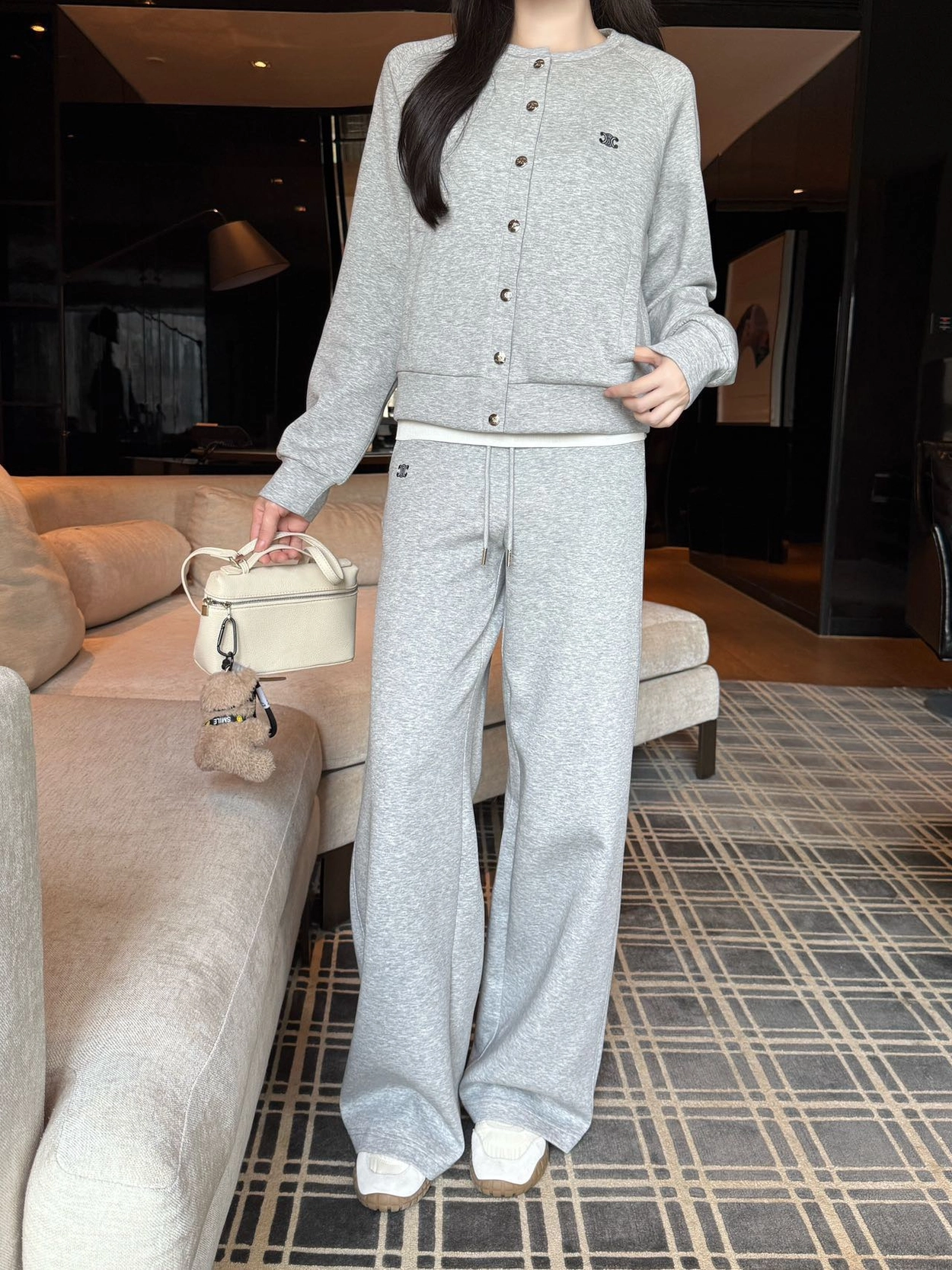 셀린느 라이트 그레이 벨벳 재킷 바지 세트 25FW