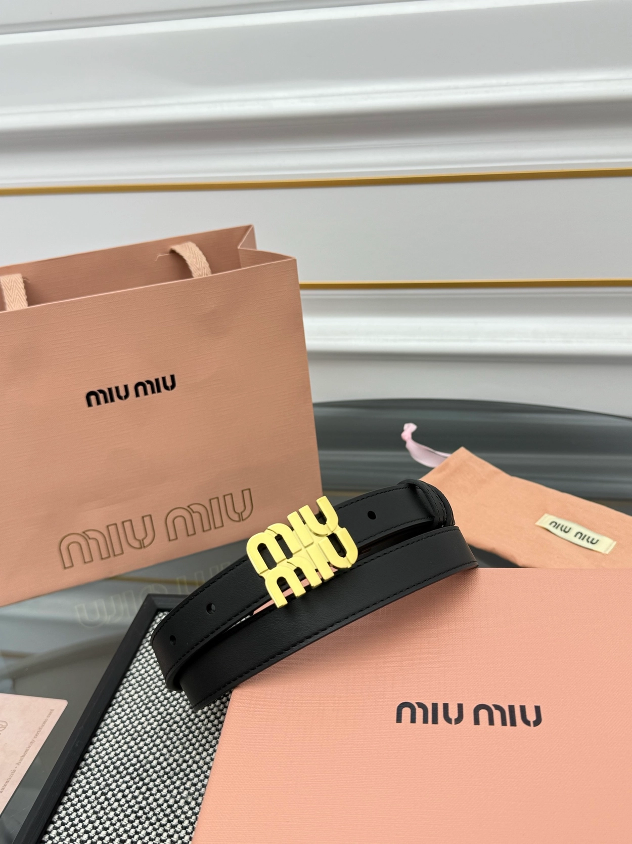 미우미우 여성용 글로시 벨트 2.0cm