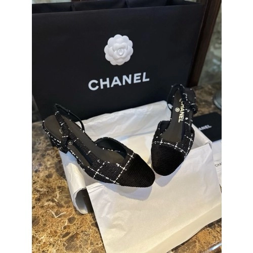 샤넬 트위드 슬링백 미들힐 (굽 6.5cm)
