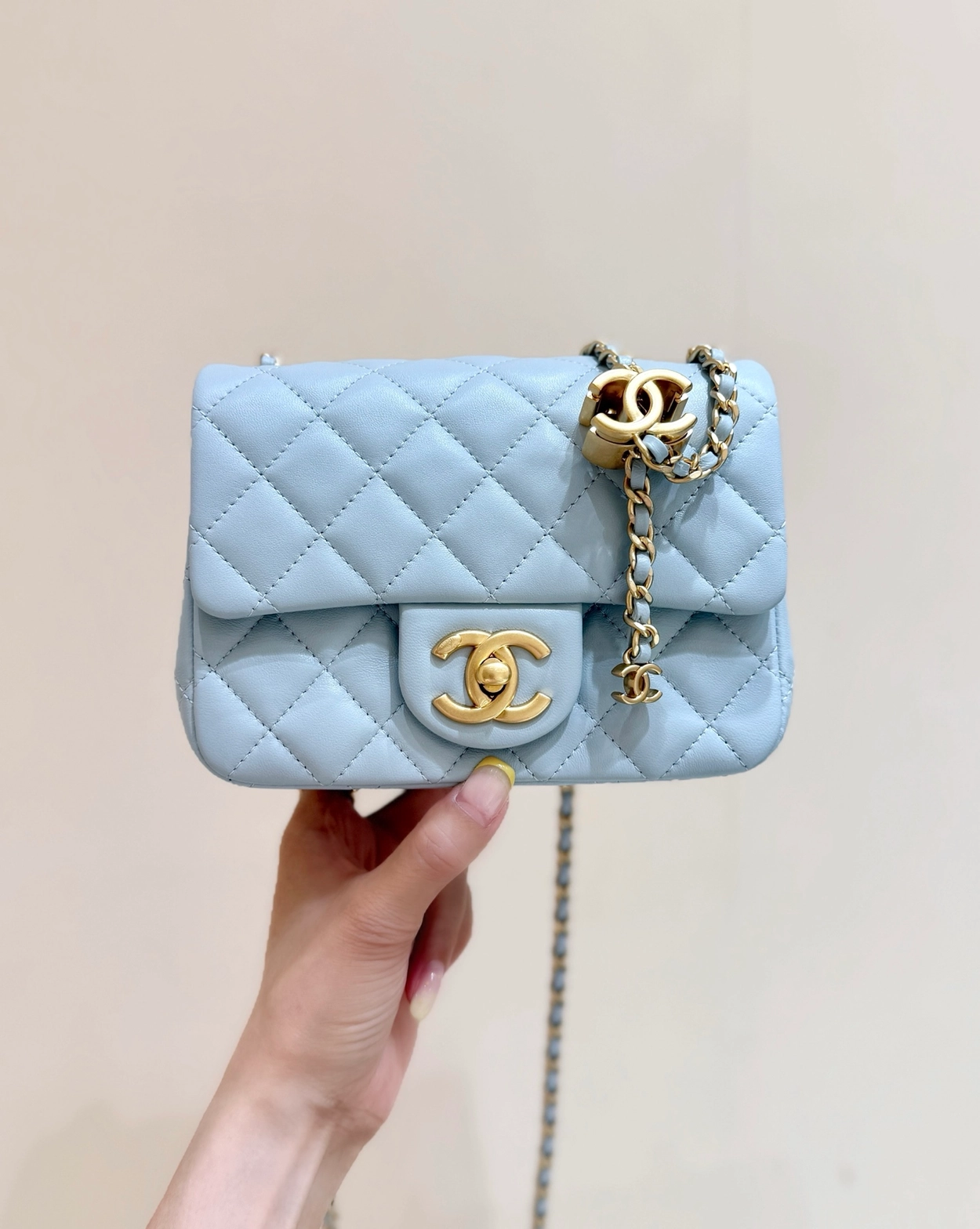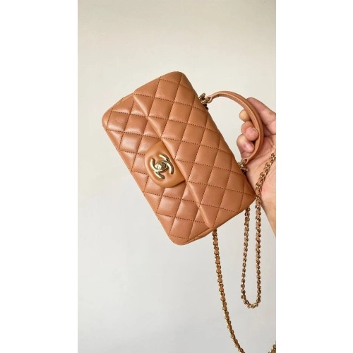 샤넬 25SS 체인 탑핸들 플랩백 CC로고 체인 미니백 폰홀더 베이지 샴페인골드 AP3238