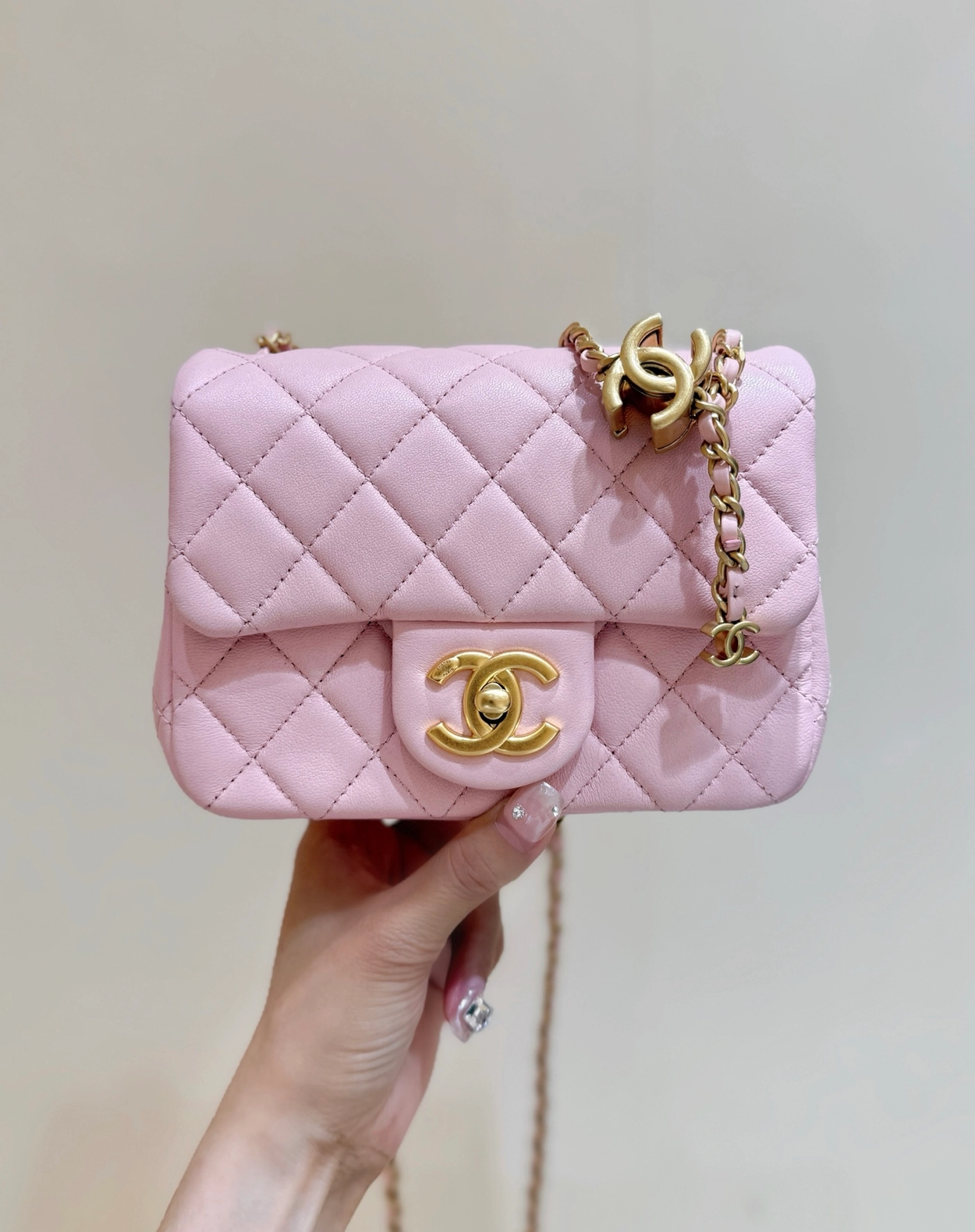 샤넬 클래식 램스킨 플랩백 뉴미니 금장 (upgrade ver.)