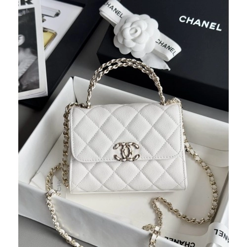 샤넬 핸들 장식의 미니 플랩 백 화이트 금장