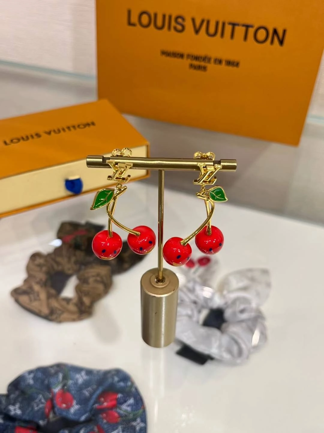 루이비통 LV 귀걸이 무라카미 다카시 콜라보 골드 레터링 체리