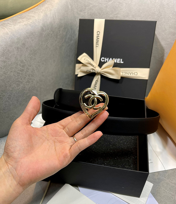 샤넬 하트 cc로고 레더 벨트 3cm