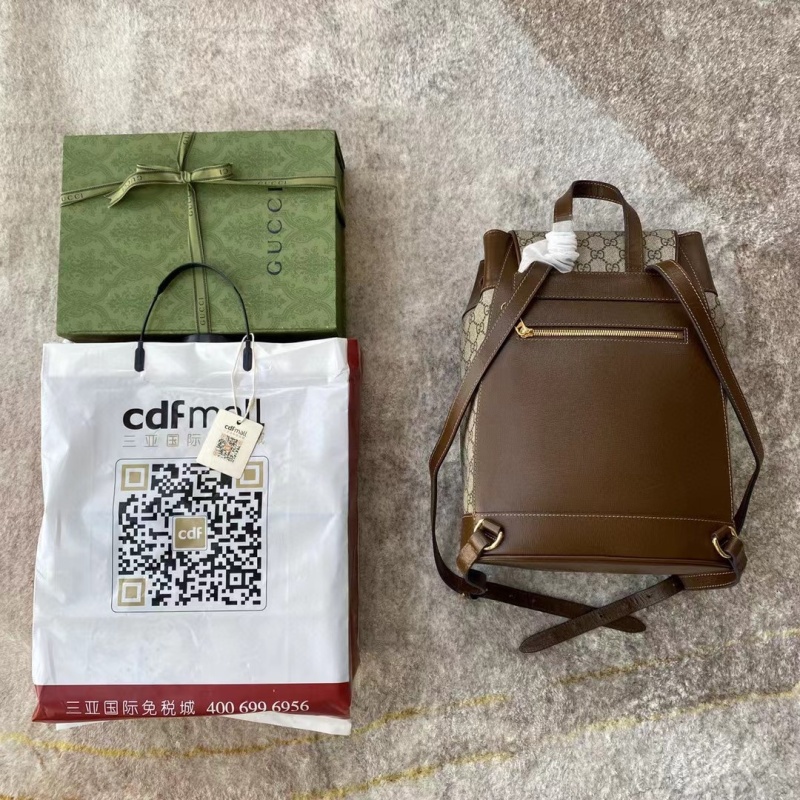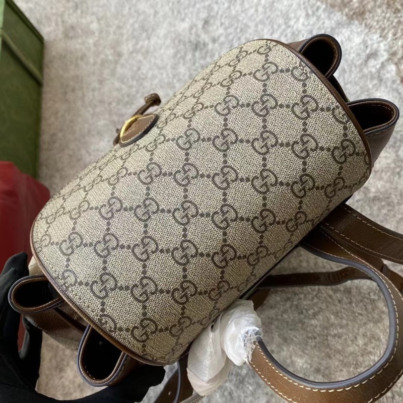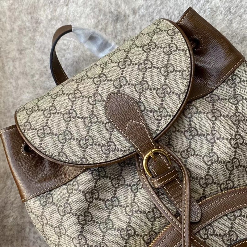 GG Supreme 고급 인조 캔버스와 가죽 소재로 제작된 배낭은 끈 플립 뚜껑의 개폐 디자인과 조절 가능한 가죽 끈과 전면 지퍼 포켓을 매치해 이중 링과 스트립으로 구성된 고전적인 말 버클 디자인을 강조했다.