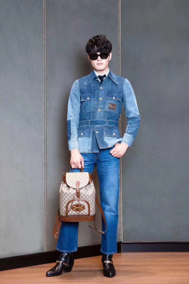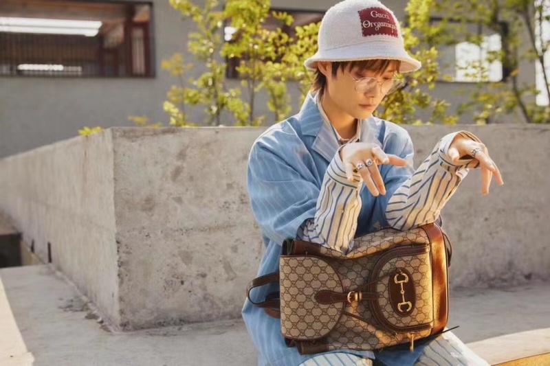 1955 홀스빗 배낭, 이 배낭은 G 가 1955 홀스빗의 컬렉션 디테일에서 영감을 얻어 고전적인 요소와 현대적인 정수 사이의 교차를 활용하여 현대적인 패션 분위기가 풍부한 스타일링을 만듭니다.