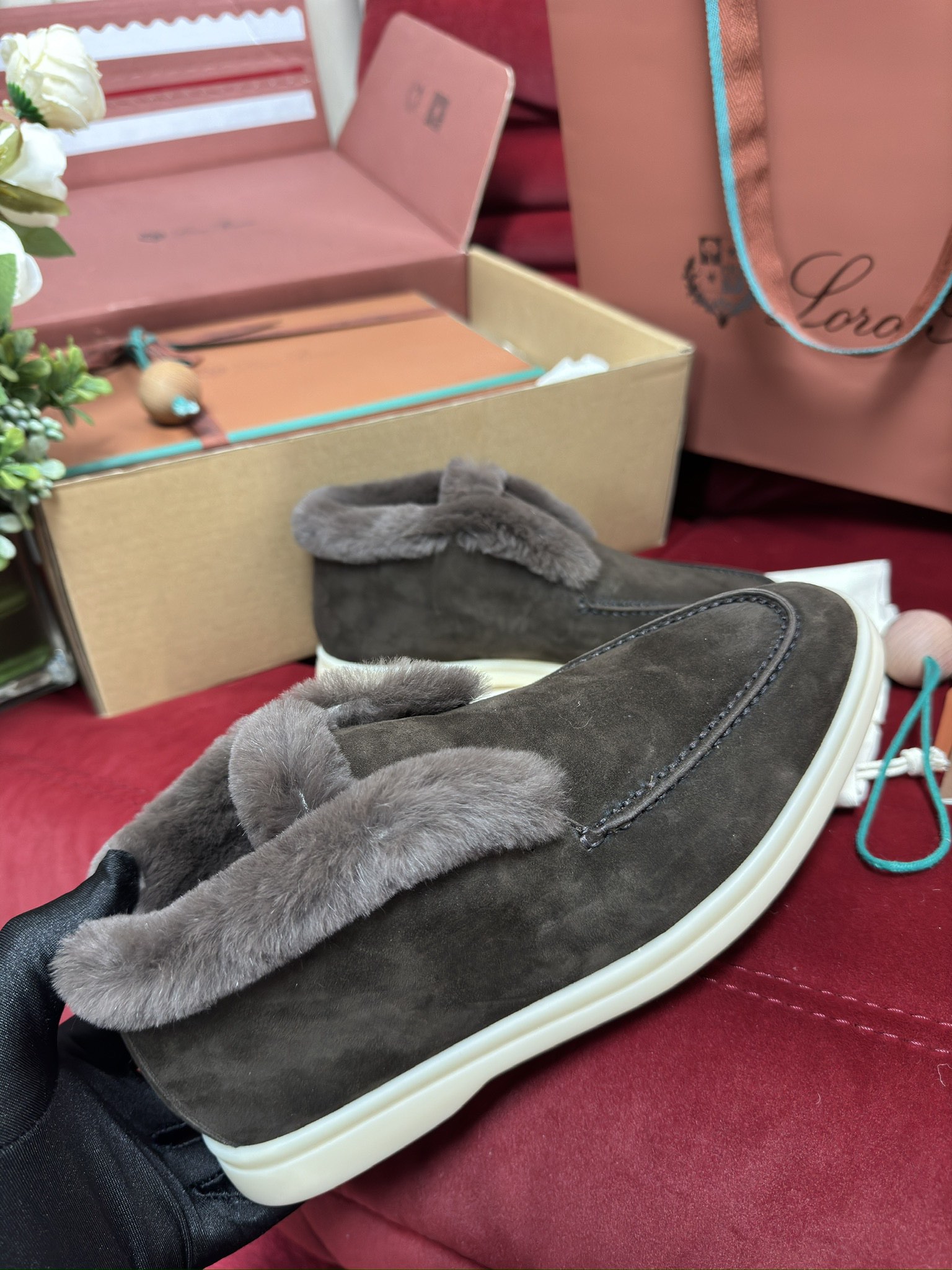 로로피아나 오픈워크 퍼 시어링